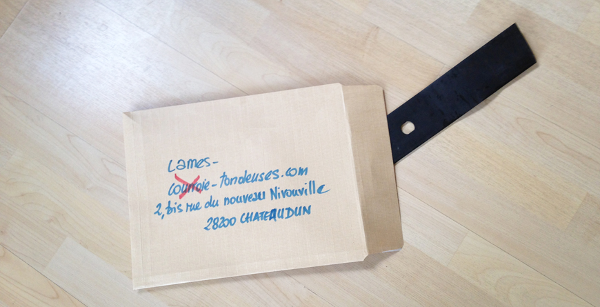 Comme pour vos courroies, vous pouvez nous faire parvenir votre ancienne lame par la poste à l'adresse suivante :